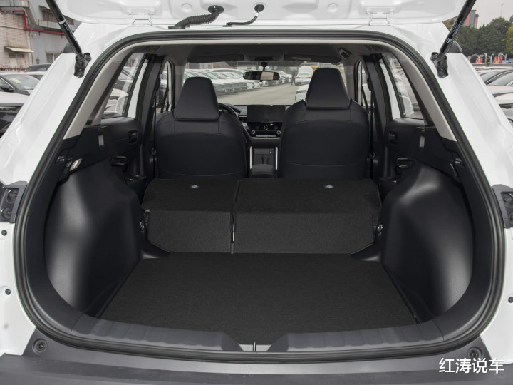 丰田锋兰达的空间算是基本够用水平,身高1.78米的体验者在前排调整好坐姿,再进入到后排,腿部空间有1拳多点的距离,头顶空间有近1拳的余量,仿皮座椅填充很厚实,但是后排坐满3名乘客,横向空间又有些不足,而后排座靠背角度偏直,只能向前小幅度调节,后备厢容积中规中矩,后排座椅放倒后坡度较大。