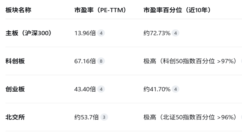 数据最能说明问题:美联储主席鲍威尔近日公开说美股估值处于“相当高”的水平,提示投资人注意风险。我马上查了一下全球人工智能最强者云集的纳斯达克100指数,其平均市盈率目前是40倍左右,而A股国内人工智能“领军者”所处的科创板、创业板的平均市盈率请见下表。